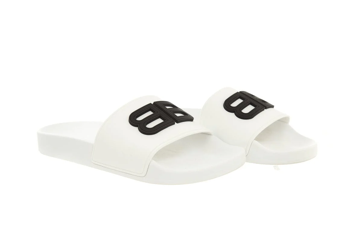 Balenciaga White And Black Logo Pool Slides SZ 37