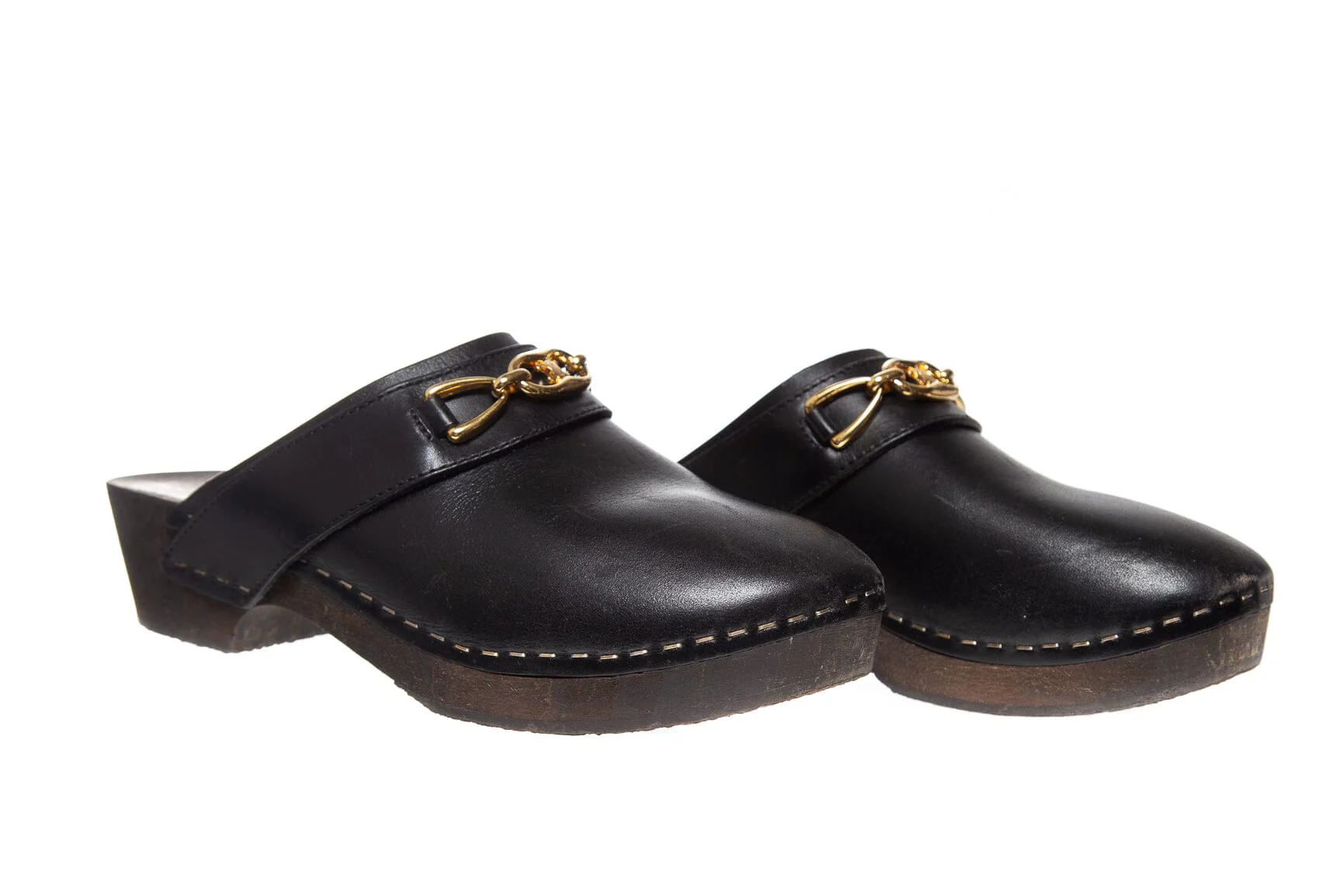 -70%Celine Black Leather Les Bois Clogs SZ 38ā