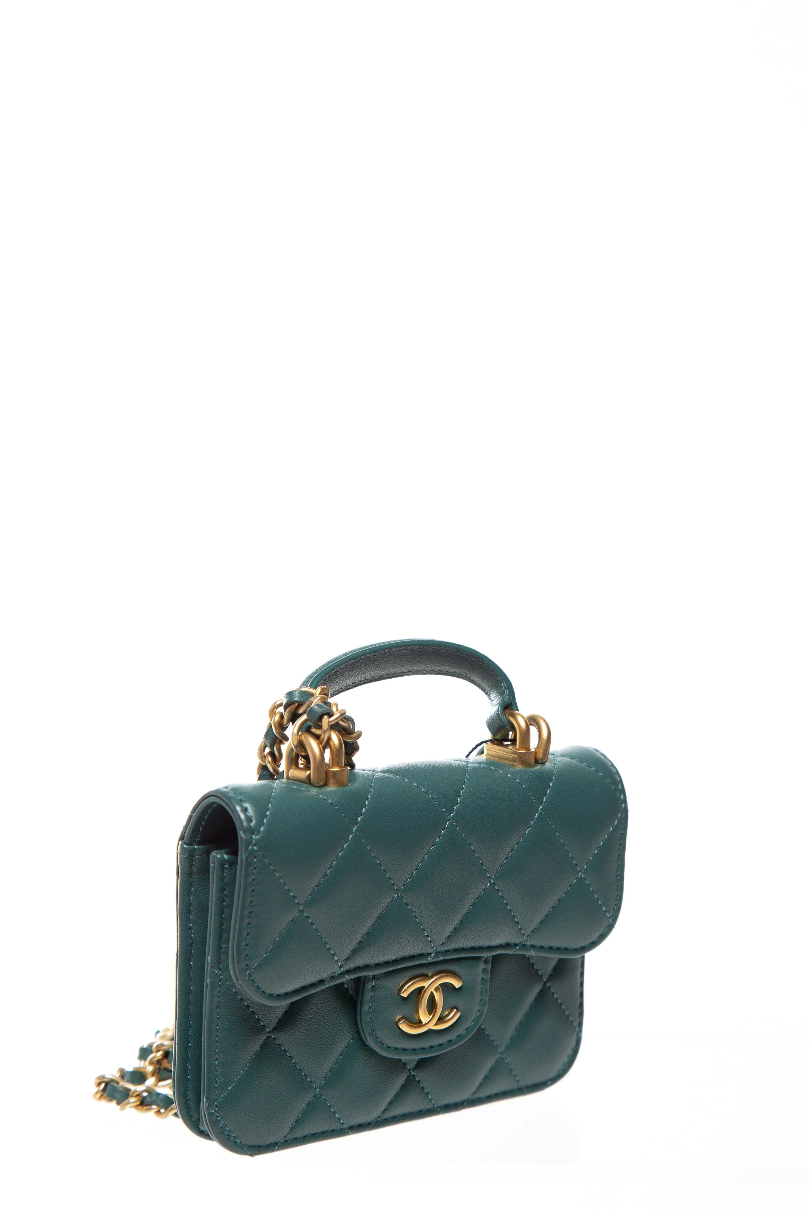 Chanel Teal Quilted Leather Top Handle Flap Coin Purse