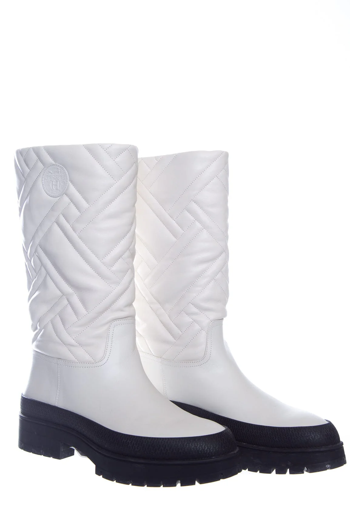 Hermès Ivory Quilted Fuji Leather Rain Boots. This item is in very good condition.