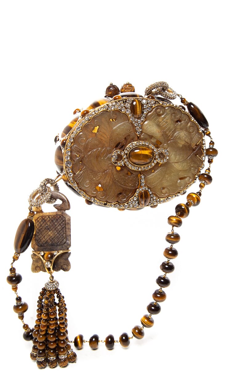 Iradj Moini Natural Tiger Eye and Onyx Precious Stone Evening Bag