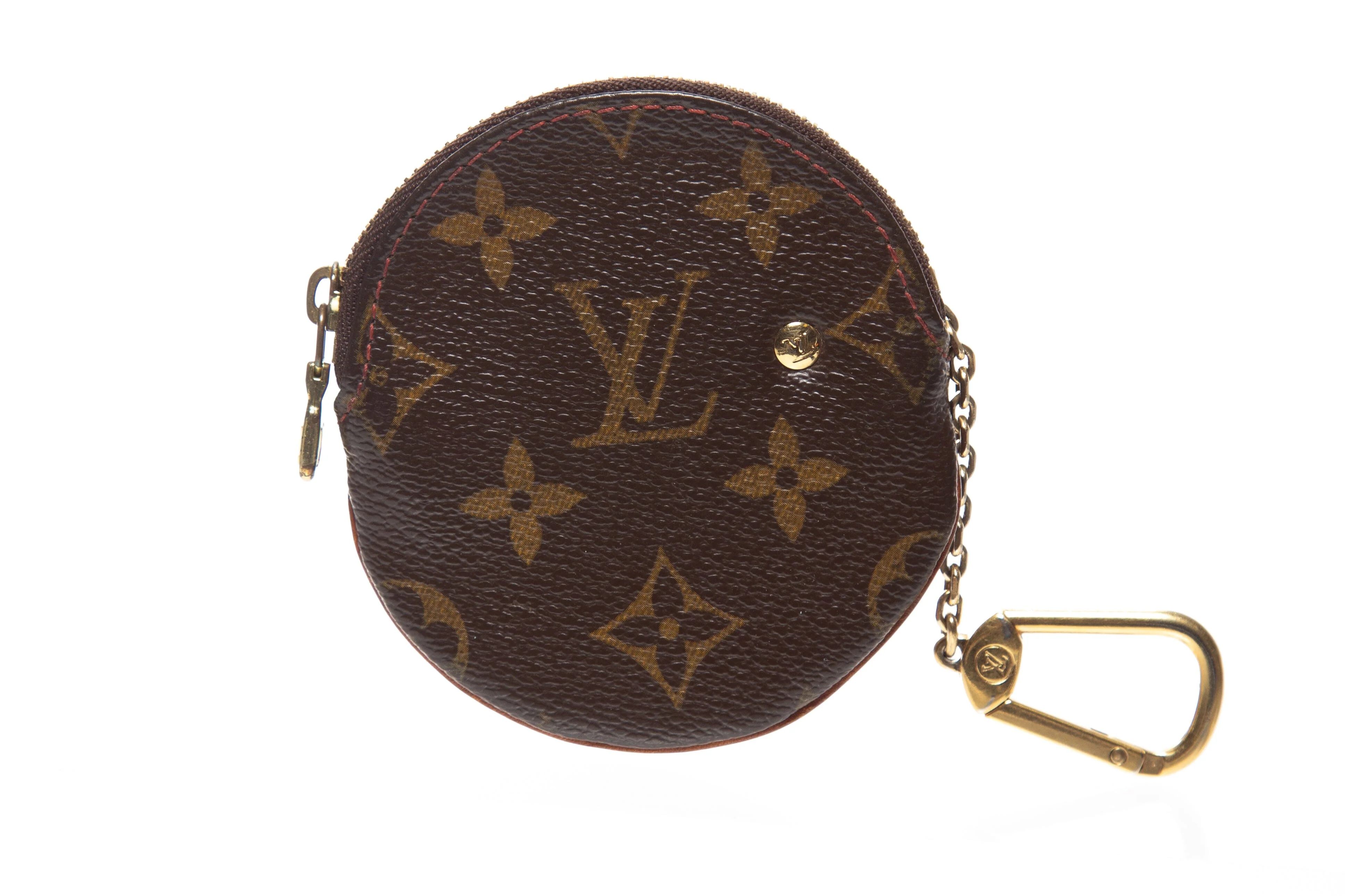 Louis Vuitton Brown Coated Canvas Cherry Coin Purse. This item is vintage with some wear on print and interior.